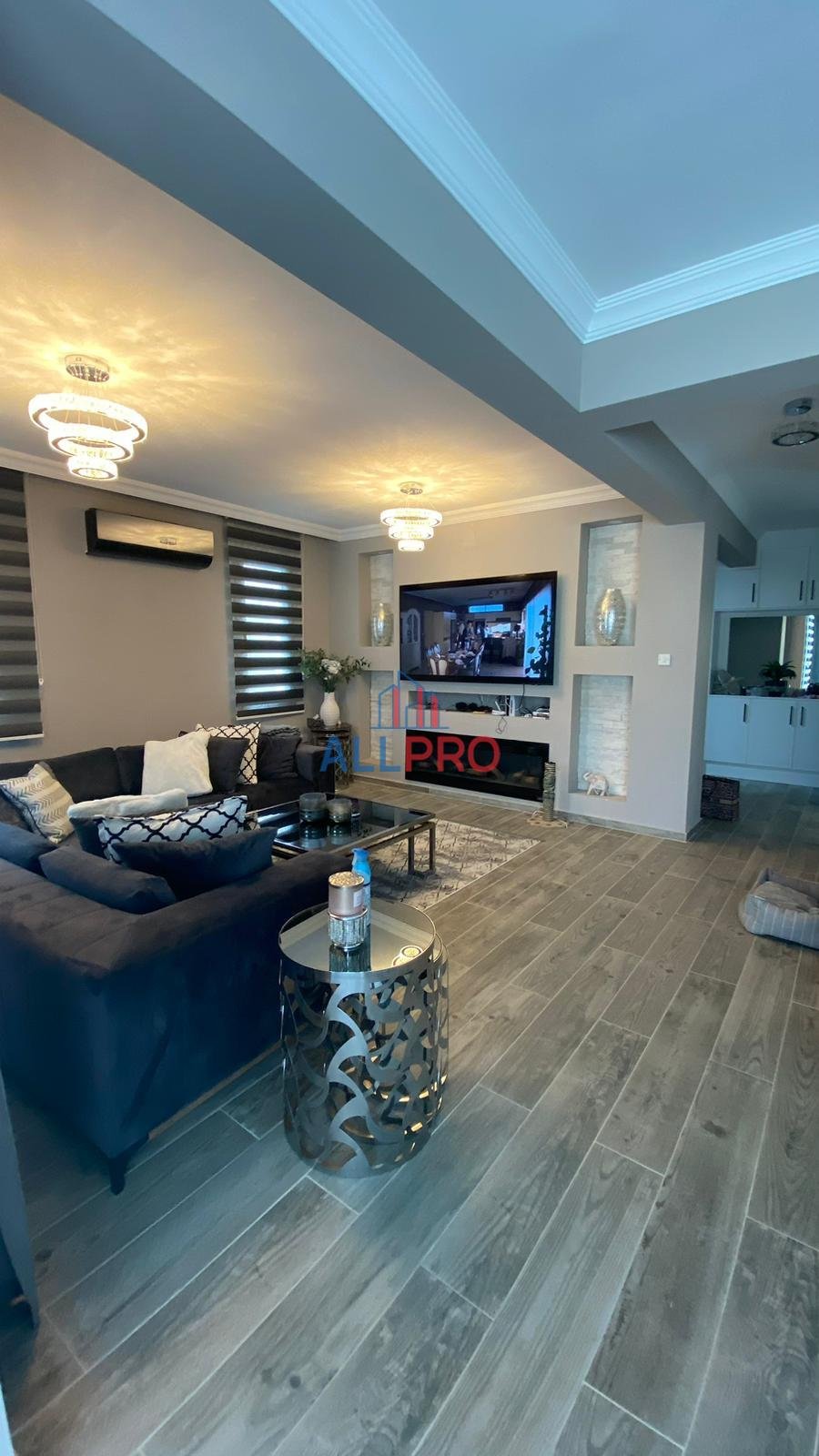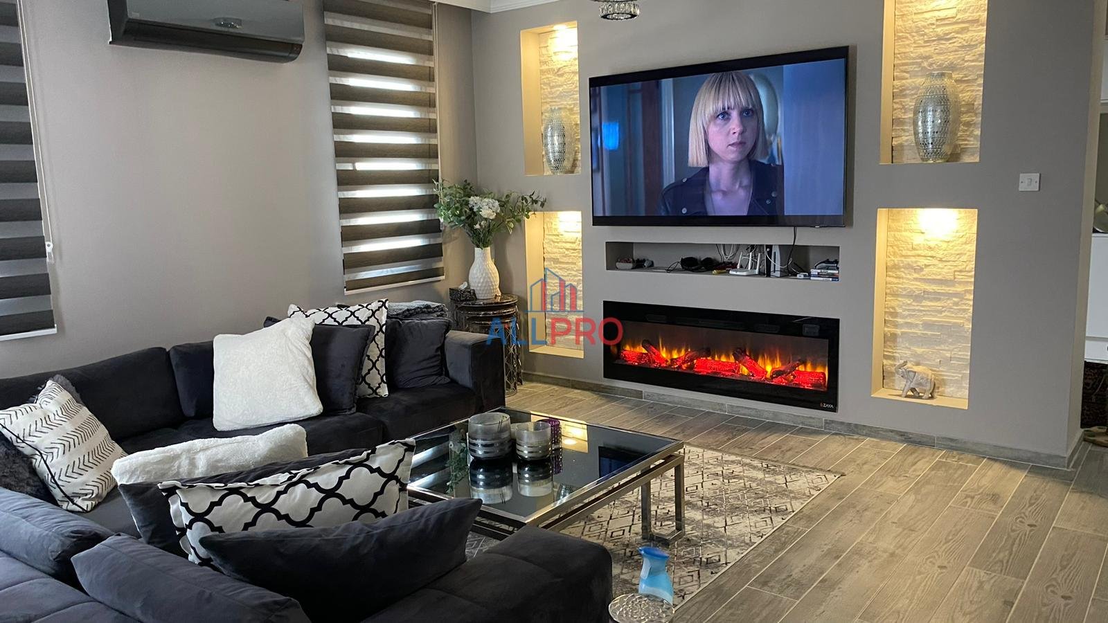 Oturma odası şömineli, tüm odalarda klima