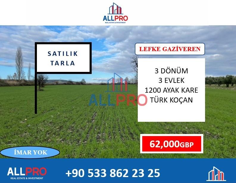 Resmi yolu yok İmara kapalı 3 dönüm 3 evlek 1200 ay² 232,500 stg toplam fiyatı
